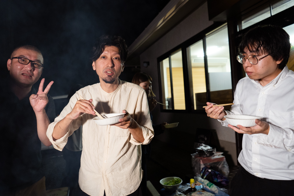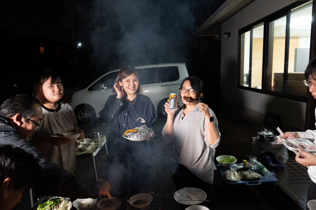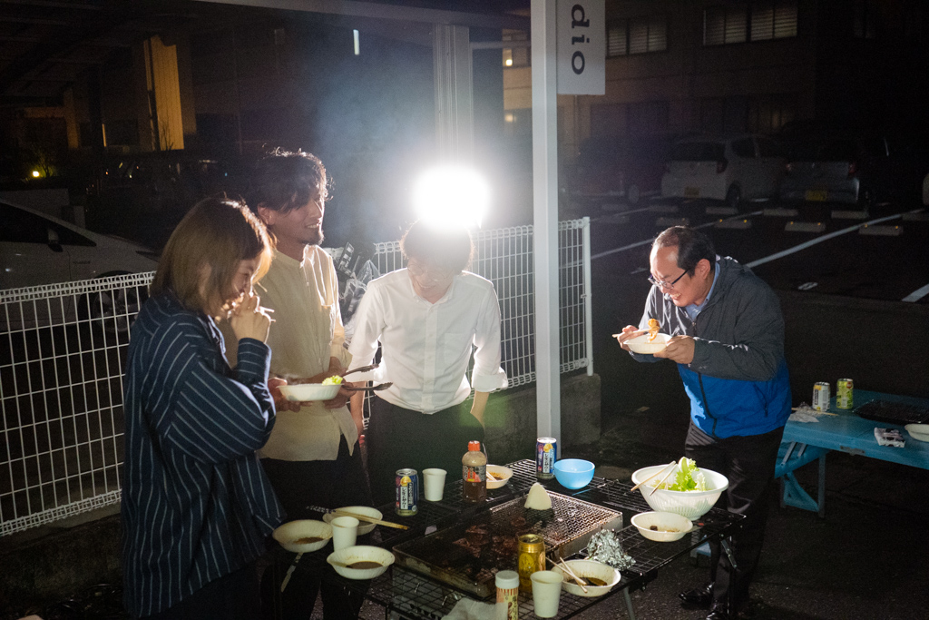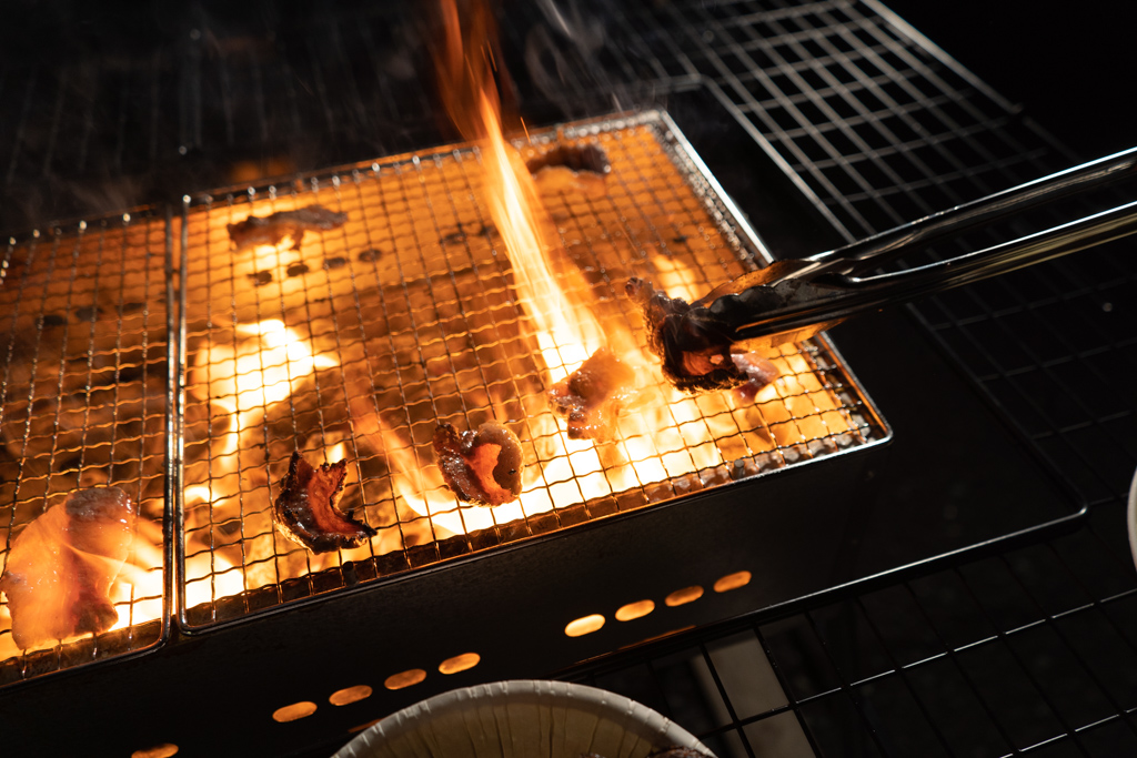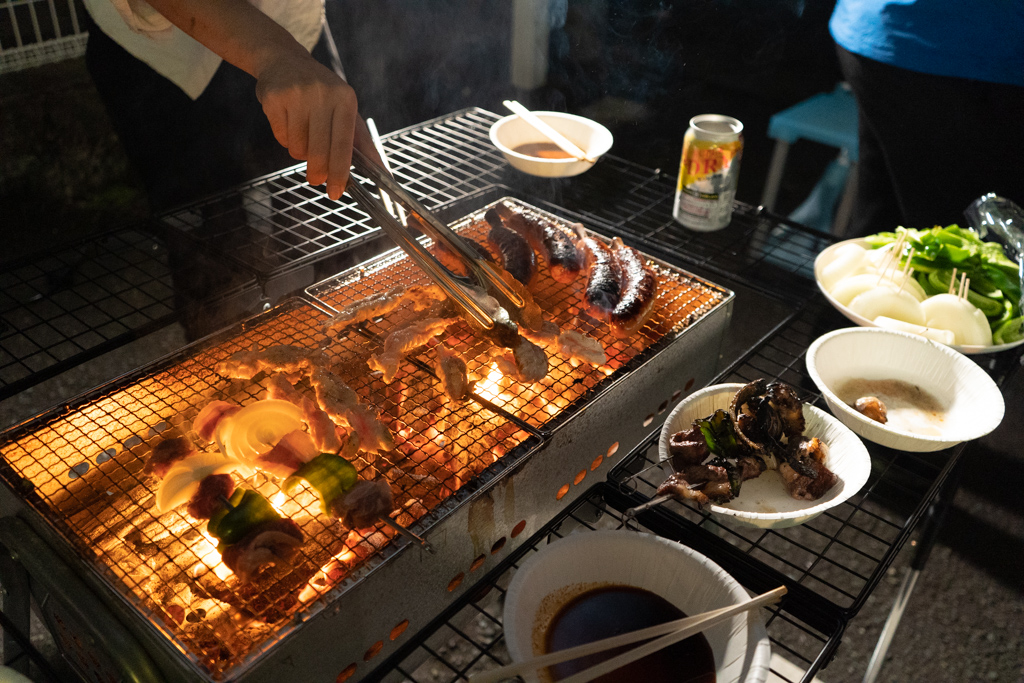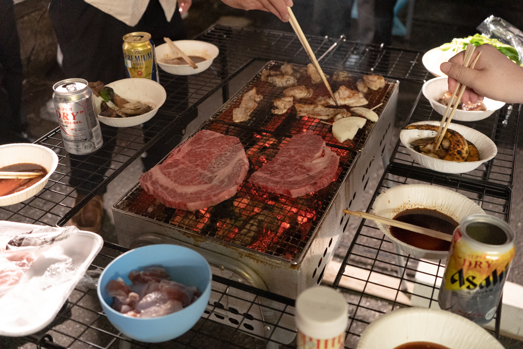 焼いたり食べたり飲んだり喋ったり、自由に盛り上がっています。
