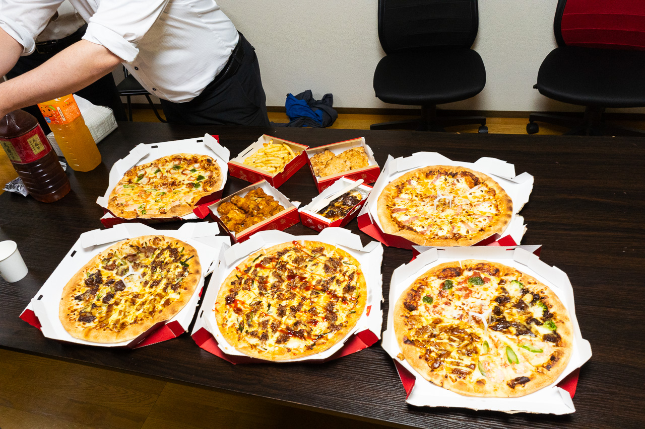 弊社では毎月みんなでご飯を食べているのですが、今月はピザ!🍕