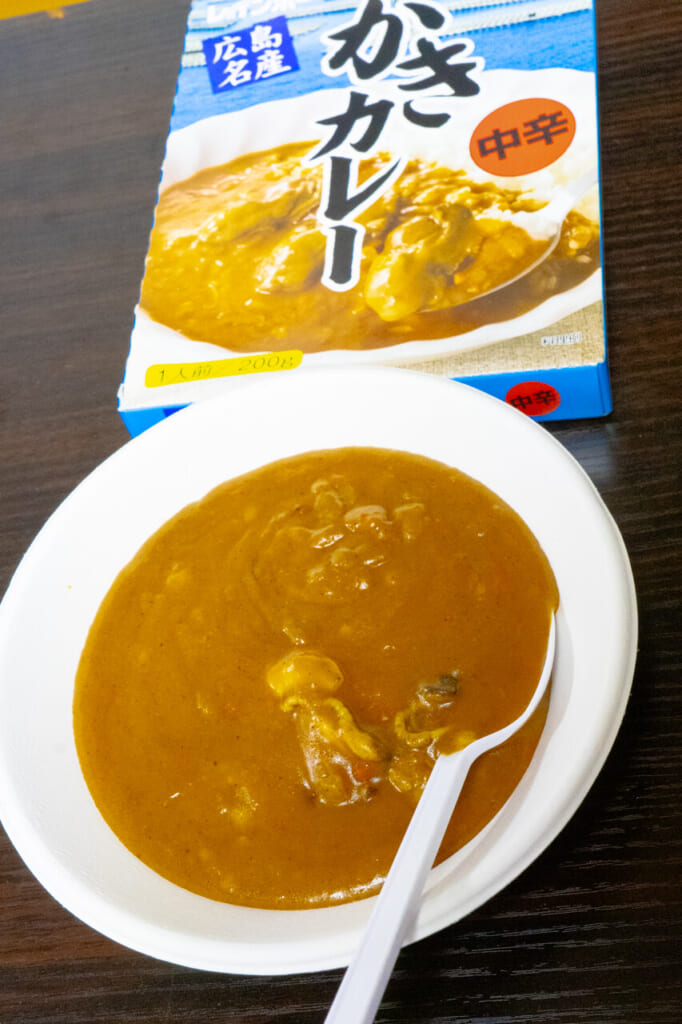 瀬戸内海でとれる広島県産かきを、ソテーオニオンと牛乳、バター、ココナッツで仕上げたカレーソースで煮込んだカレー。