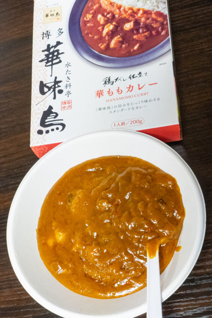 九州産華味鳥のもも肉を使用し、じっくりと煮込むことでコク深く旨みあふれるマイルドな味に仕上げてある。