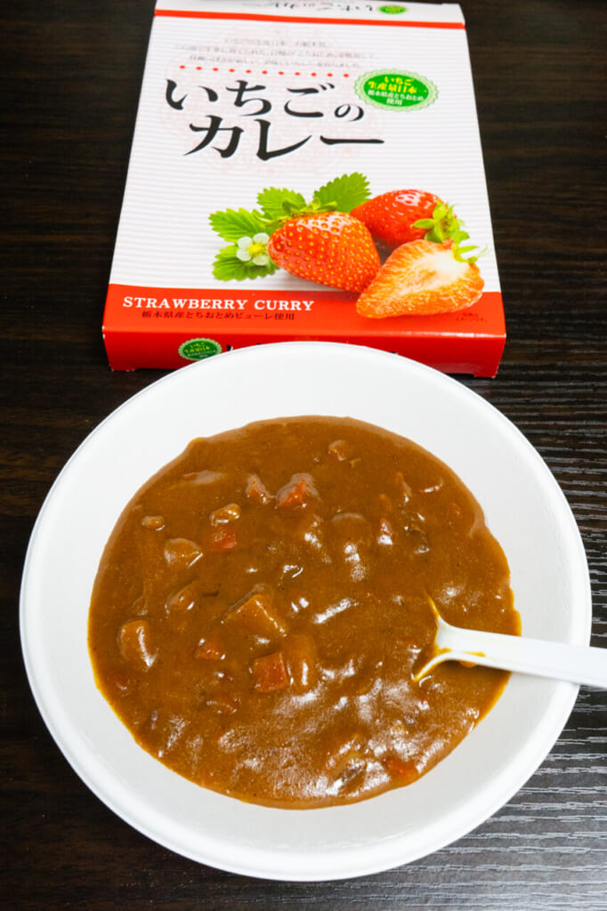 いちごの爽やかな甘さが最初に入ってくるね。意外にカレーとマッチしてる感じがする。