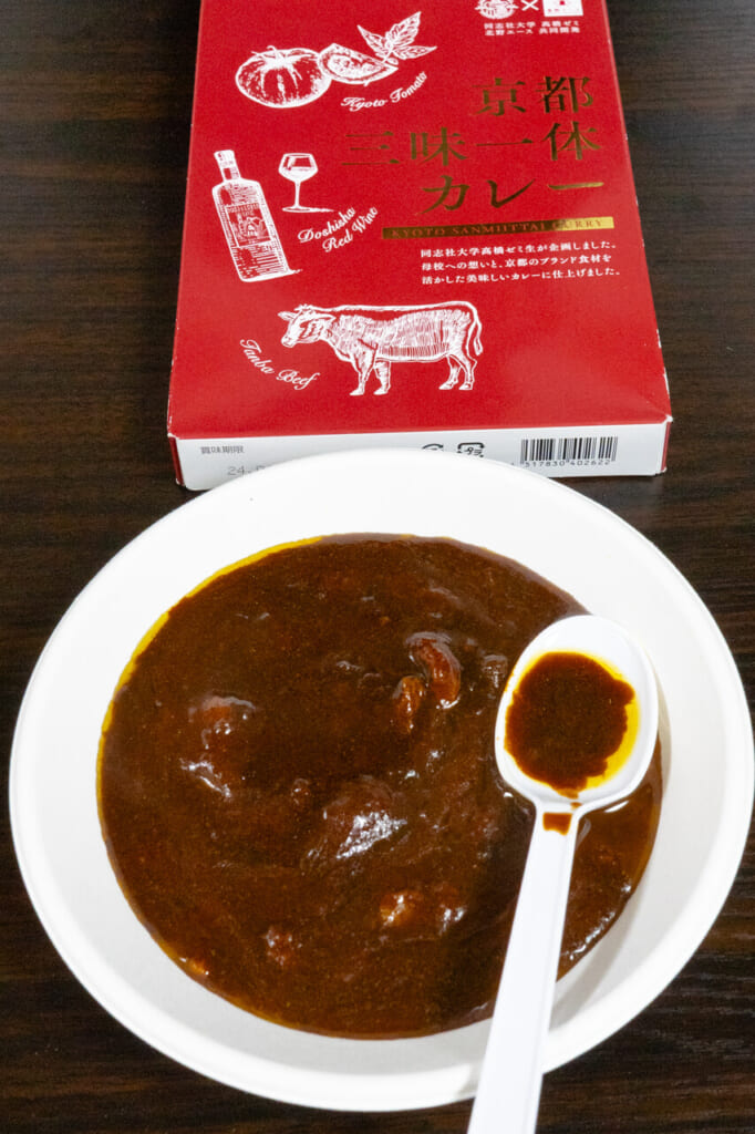上質な丹波牛、糖度の高い京トマト、丹波の地で作られた同志社ワイン、という3つの食材を使用したカレー。