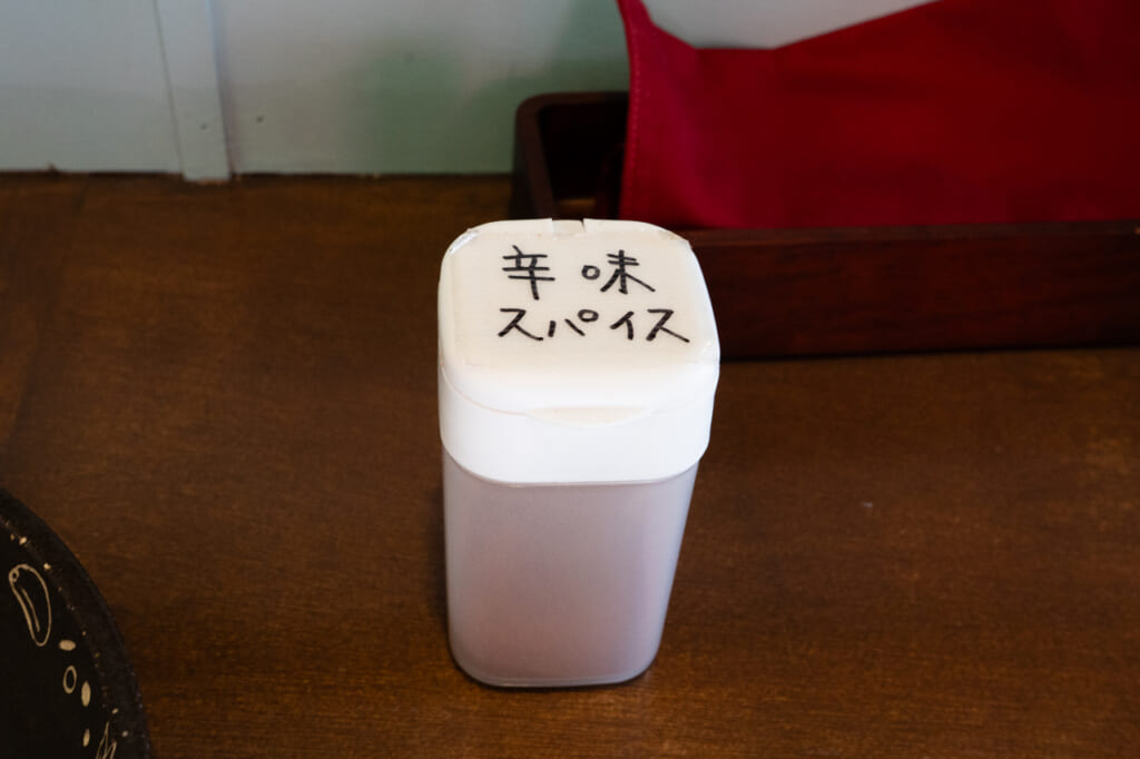 辛さはほぼないので、自分で調整できるようにスパイスが席に準備されています。