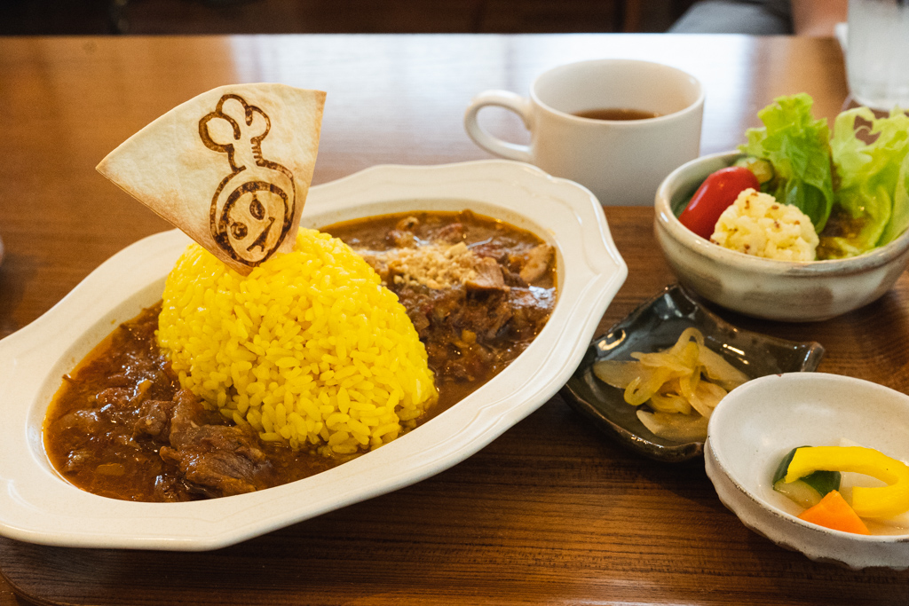 魔皿カレーは少し辛くて、そのままでも美味しいけど、白い部分を混ぜながら食べたらマイルドになってより食べやすいです。