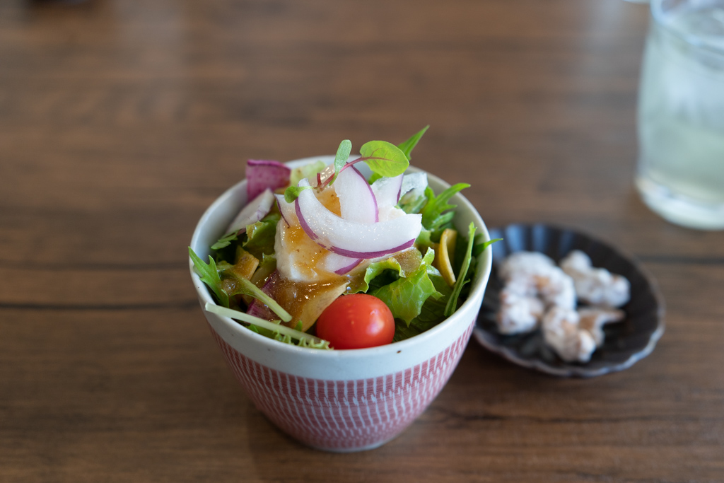 サラダとカシューナッツを食べつつ待ちます