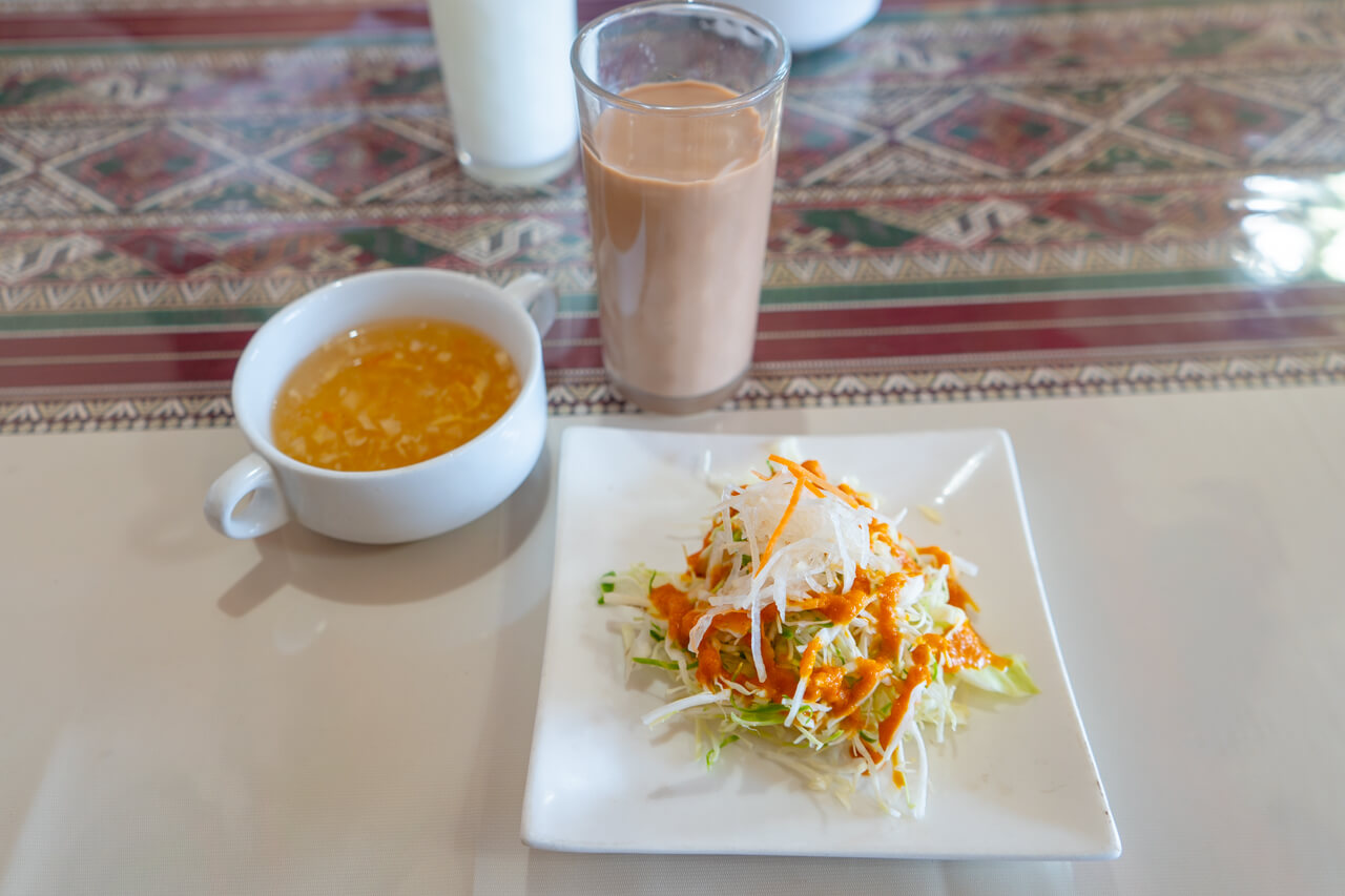 サラダは胡麻ドレッシングっぽくて美味しい〜🥗